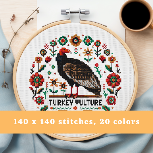 Turkey Vulture Vintage Style Cross Stitch Pattern